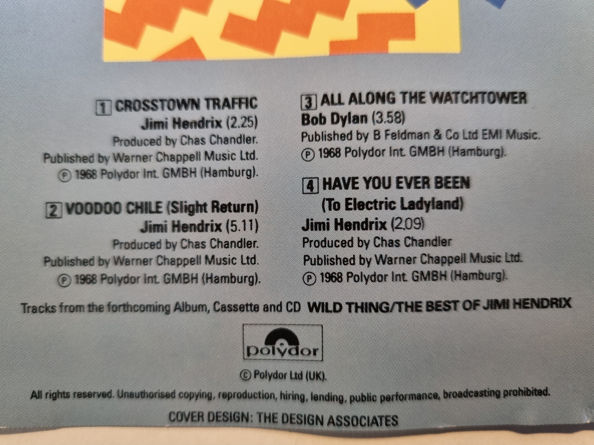 Voer deze EAN-code in een zoekmachine of een muziek-database (b.v. discogs) in voor meer informatie over deze release van de cd-single Crosstown Traffic van de legendarische Jimi Hendrix.