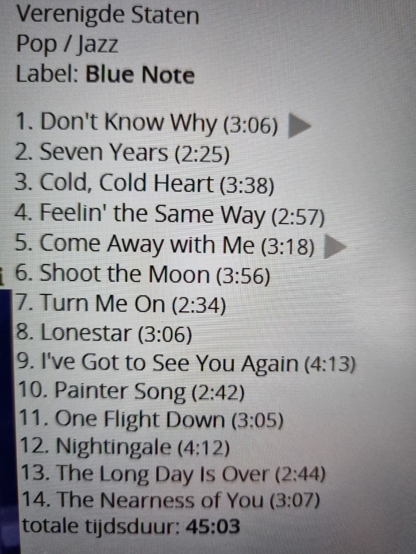 Voer deze EAN-code in een zoekmachine of een muziek-database (b.v. discogs) in voor meer informatie over deze release van de cd Come Away With Me, het debuutalbum van de Amerikaanse jazz-zangeres Norah Jones.