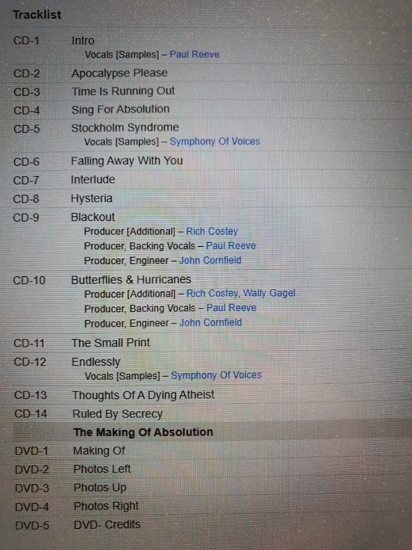 Special Edition met bonus DVD van Absolution, het derde reguliere album, uit 2003, van de Britse rockband Muse. Met o.a. Stockholm Syndrome, Butterflies And Hurricanes, Hysteria, Time Is Running Out en Sing for Absolution.