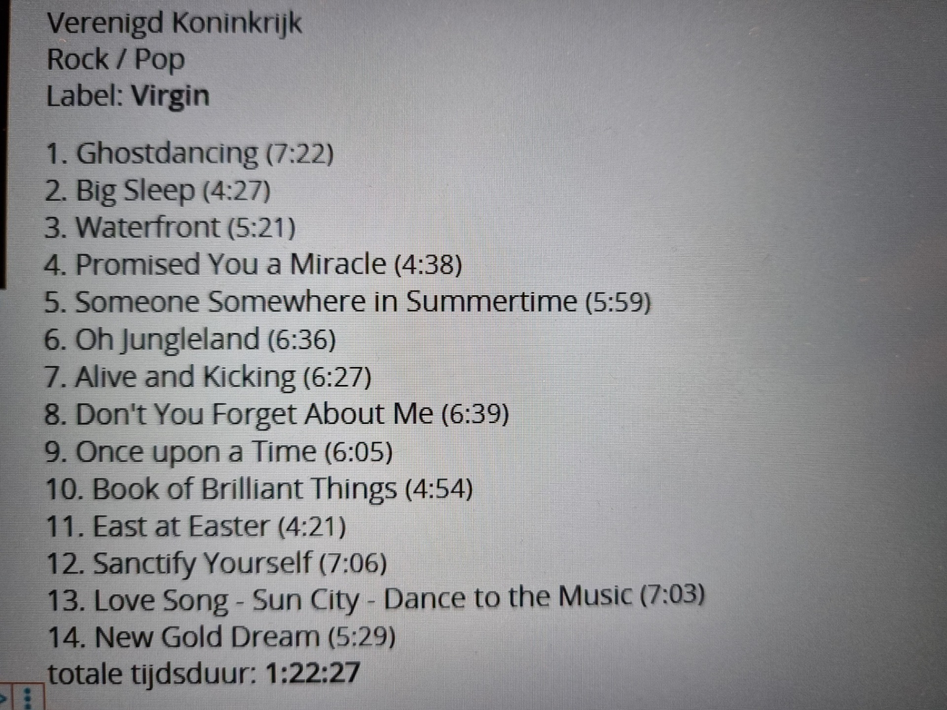 Voer deze EAN-code in een zoekmachine of een muziek-database (b.v. discogs) in voor meer informatie over deze release van de cd In The City Of Light, het dubbel-live-album van de Schotse band Simple Minds rond zanger Jim Kerr.