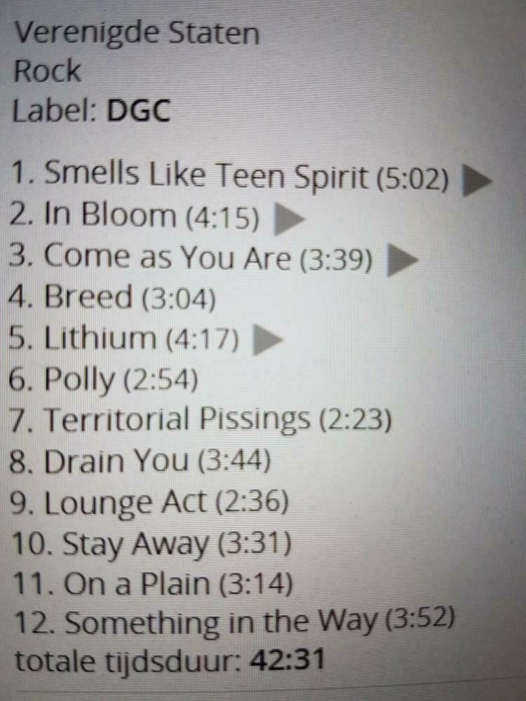 Nevermind is het zeer succesvolle en legendarische tweede reguliere album, uit 1991, van de Amerikaanse grungeband Nirvana met de veel te jong overleden zanger Kurt Cobain. Met o.a. Polly, In Bloom, Lithium, Come As You Are en Smells Like Teen Spirit.